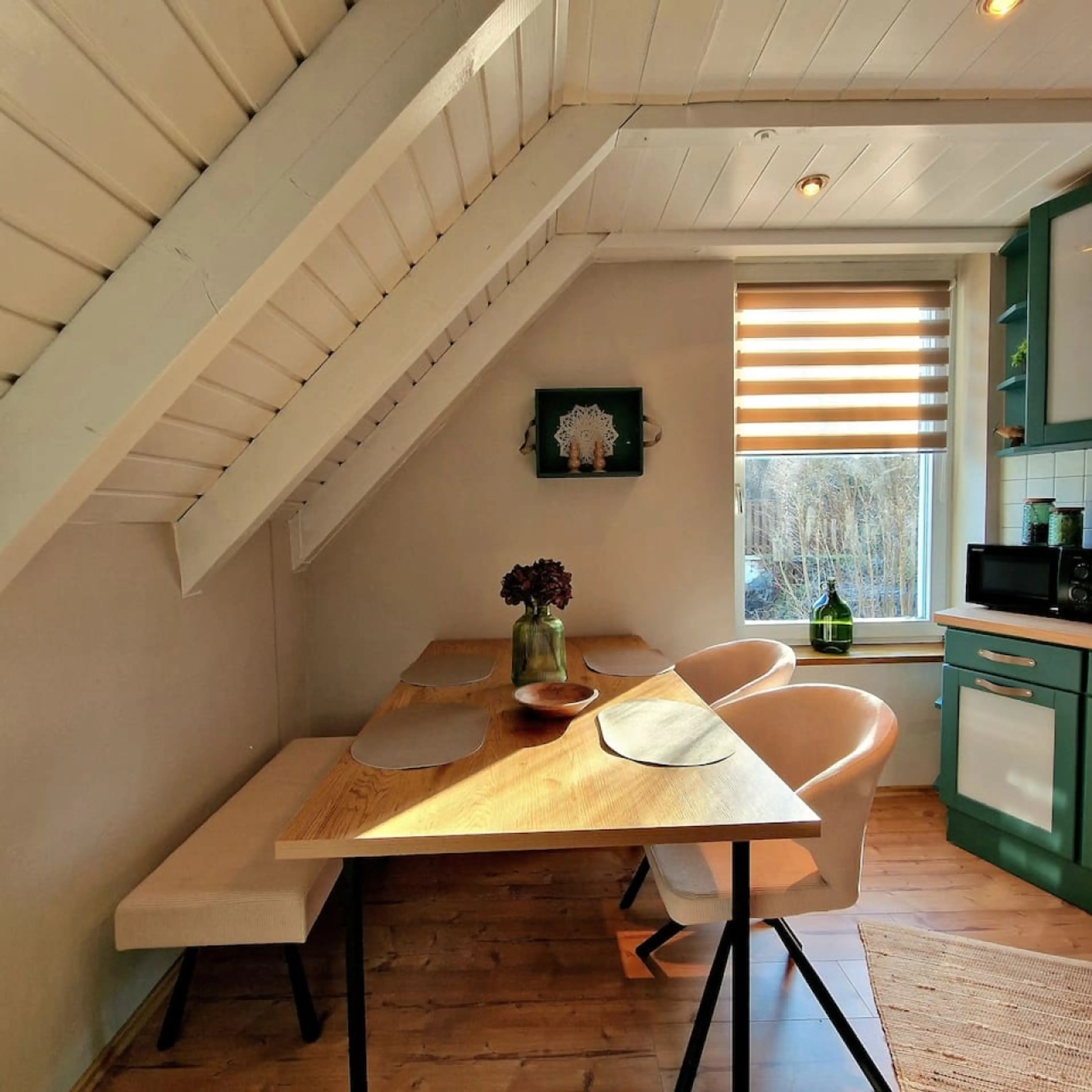 Unser stilvoll renoviertes Ferienhaus Select Home 6 bietet Ihnen das Dachgeschoss mit sichtbarem Dachstuhl und hoher Decke. Liebevoll restaurierte Möbel treffen auf moderne Elemente für eine besondere Wohlfühlatmosphäre. Highlights: neues Bad mit bodenebener Dusche, voll ausgestattete Küche, Waschma...